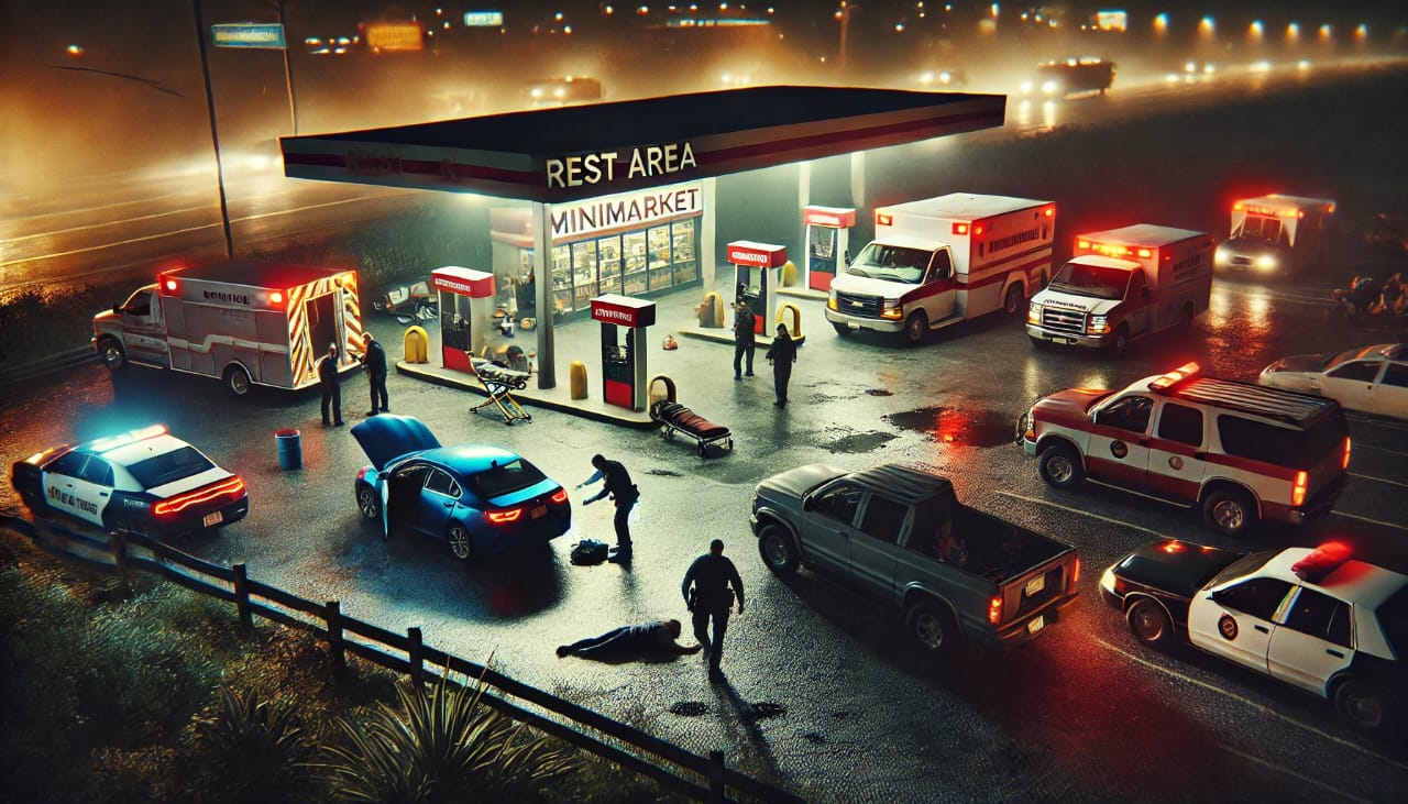 Korban bersama rekannya melacak mobil menggunakan GPS dan menghadang pelaku di rest area. Namun, konfrontasi berubah tragis saat pelaku melepaskan tembakan.