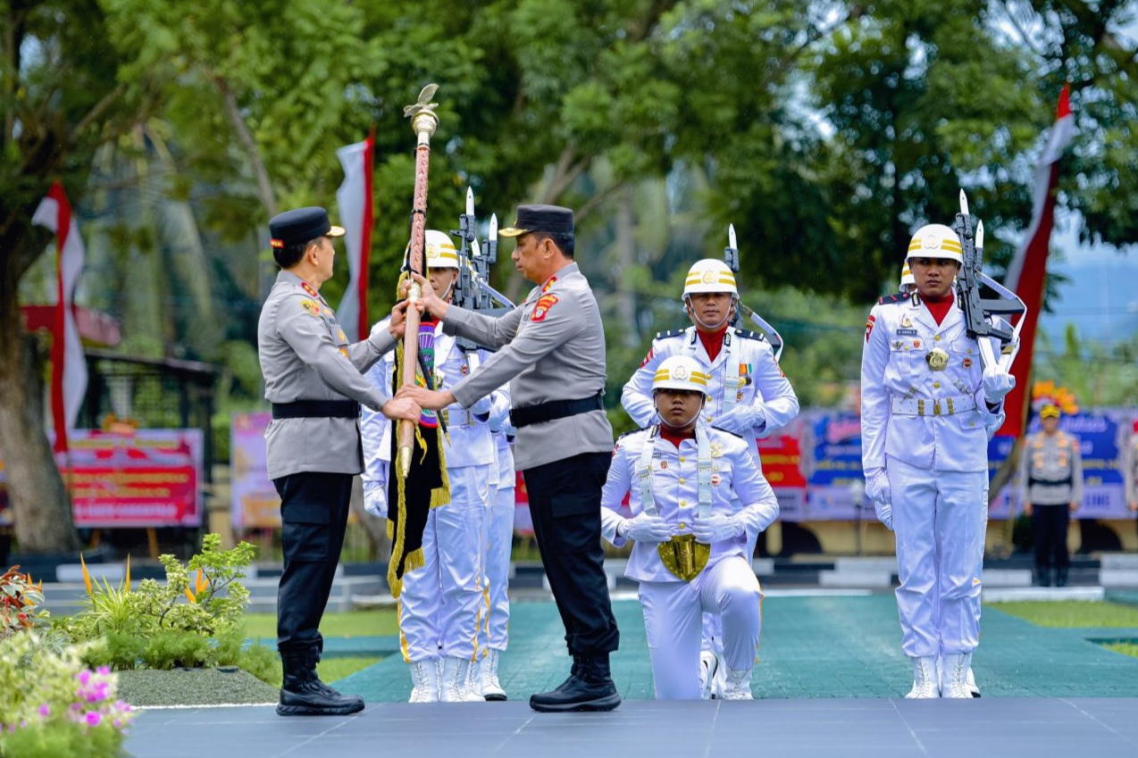 Pataka tersebut menjadi simbol kehormatan, pengabdian, sekaligus tekad aparat kepolisian dalam menjaga keamanan dan ketertiban masyarakat Gorontalo. Prosesi disaksikan pejabat utama, personel gabungan Satker, serta ASN Polda Gorontalo.
