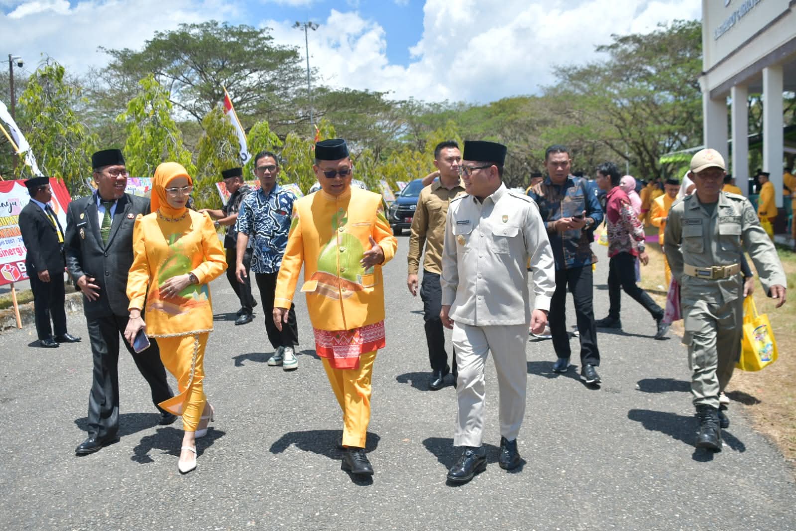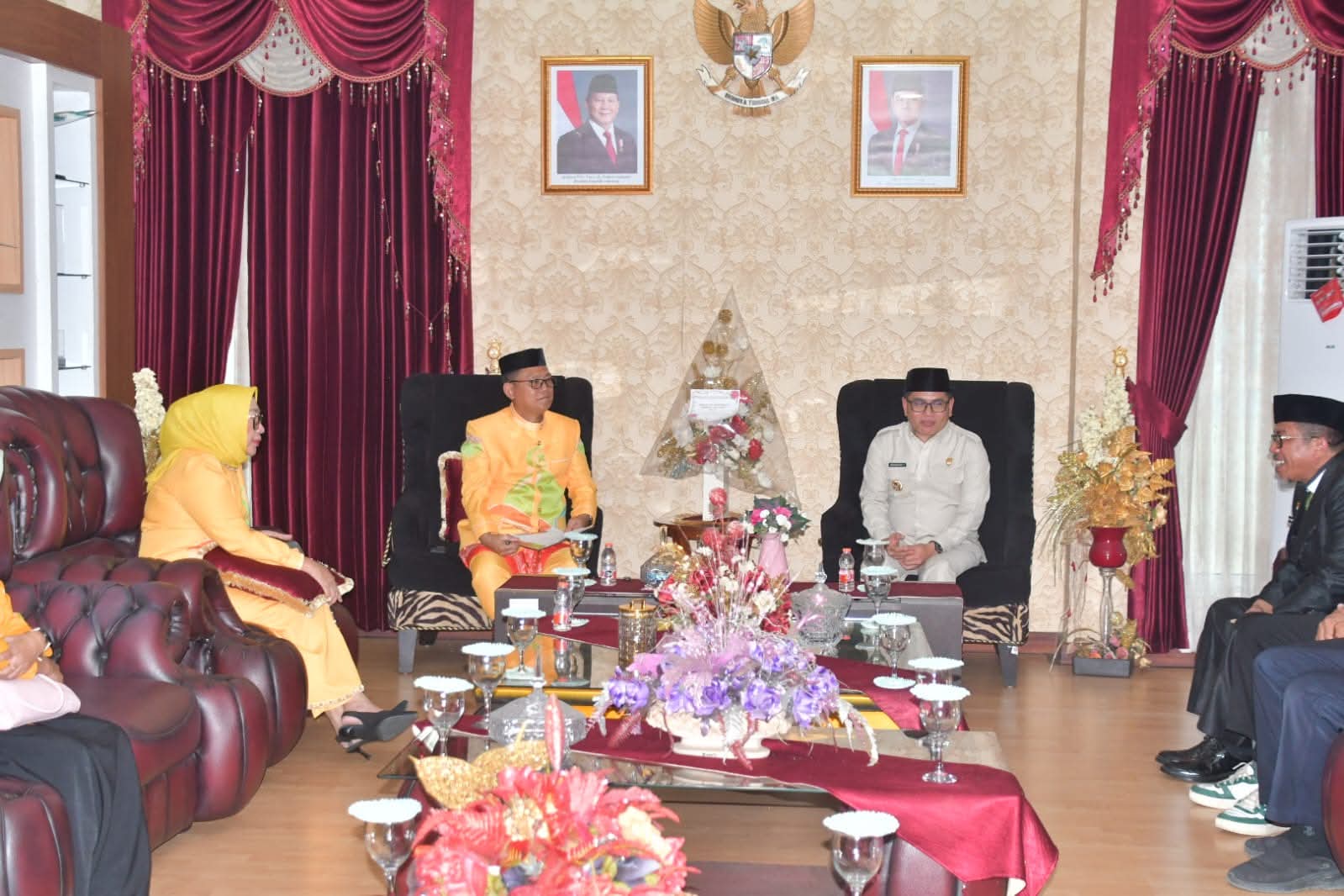 Bupati Gorontalo Utara, Thariq Modanggu, didampingi Wakil Bupati, menyambut langsung kedatangan Bupati dan Wakil Bupati Buol bersama jajaran pejabat terkait. Pertemuan berlangsung tertutup namun diklaim membahas sejumlah isu penting lintas wilayah.