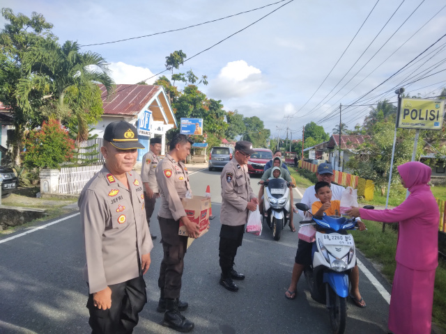 Republish.id, BOLMUT – Kepala Kepolisian Sektor (Kapolsek) Bolangitang bagi-bagi takjil gratis kepada pengguna jalan yang melintas di depan kantor Polsek Bolangitang, Minggu (17/03/2024).