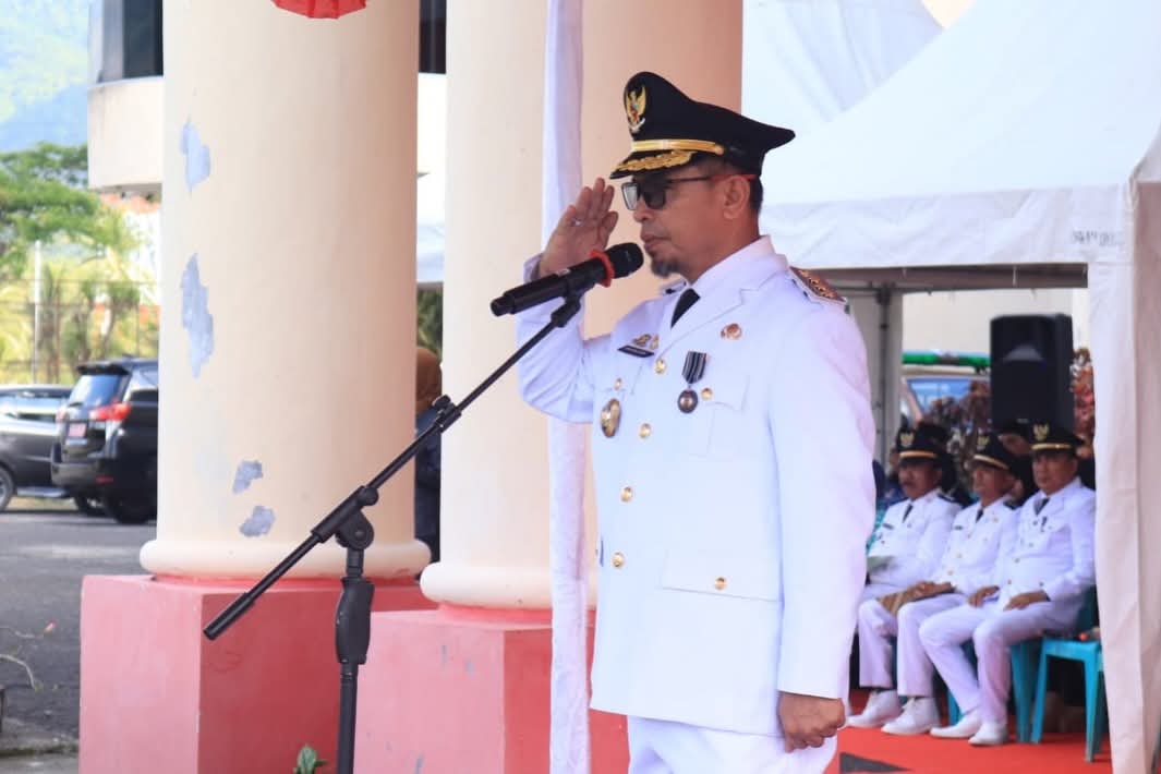 Bupati Bolaang Mongondow Utara, Dr. Sirajudin Lasena, SE., M.Ec.Dev., bertindak sebagai inspektur upacara yang digelar di halaman Kantor Bupati. Mengusung tema “Dengan Otonomi Daerah Kita Wujudkan Asta Cita”, kegiatan tersebut turut diisi dengan pembacaan sejarah singkat Hari Otonomi Daerah.