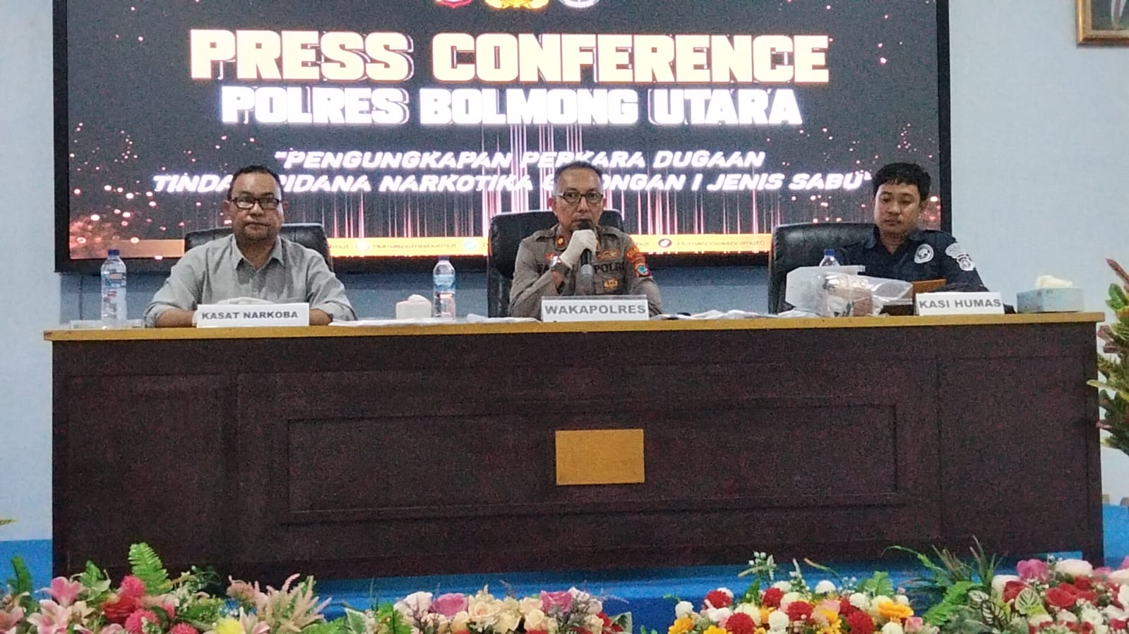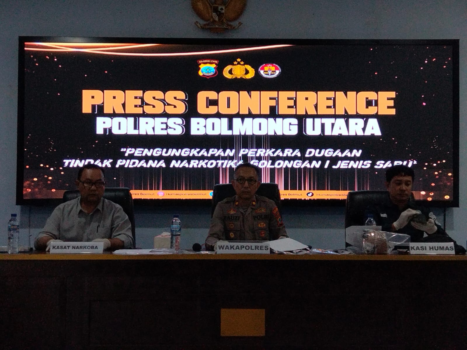 Pengungkapan kasus ini disampaikan dalam press conference yang digelar Polres Bolaang Mongondow Utara (Boltara), dipimpin langsung Wakapolres Boltara Kompol Abdul Rahman Faudji, S.H., M.H., didampingi Kasat Narkoba Iptu Hevri Samson, S.H., serta Ps. Kasie Humas Aipda Zulkarnain Noe, bertempat di Mapolres Boltara.