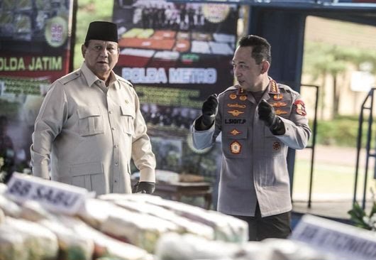 “Saya berterima kasih. Anda telah menjalankan tugas yang saya berikan di awal pemerintahan saya. Sekarang sudah Anda buktikan ke rakyat, Anda sudah mencegah tersebarnya narkoba yang sedemikian besar,” ujar Prabowo.