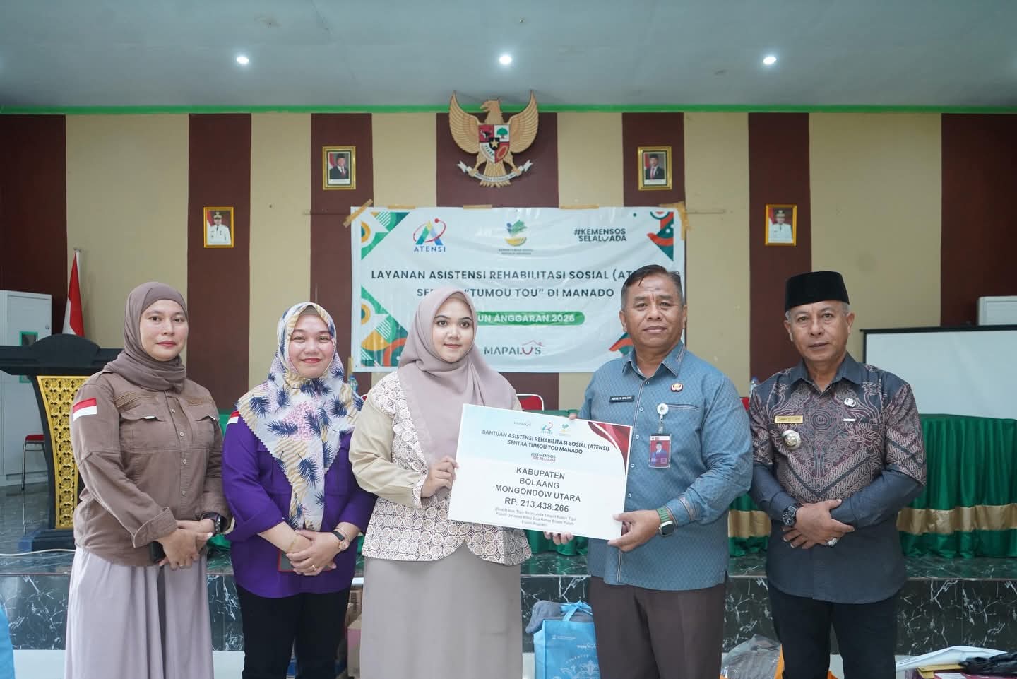 Republish.id, BOLTARA – Pemerintah Kabupaten Bolaang Mongondow Utara (Boltara) kembali menyalurkan bantuan sosial melalui program Asistensi Rehabilitasi Sosial (ATENSI). Bupati Boltara yang diwakili Asisten Administrasi Umum, Abdul Nazarudin Maloho, secara simbolis menyerahkan bantuan tersebut di Aula Kantor Camat Kaidipang, Kamis (23/04/2026).