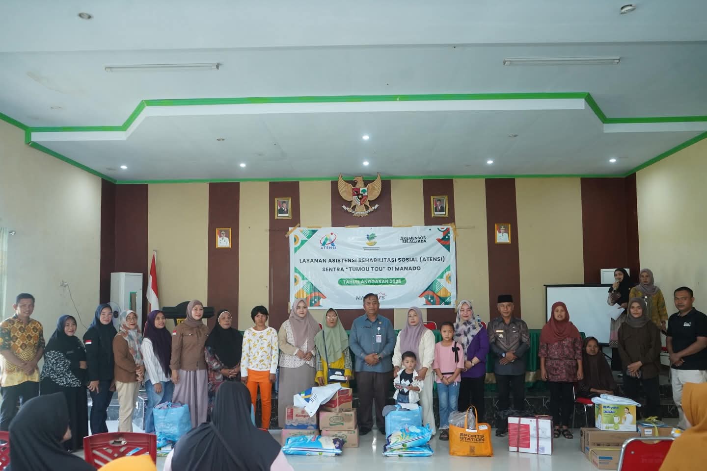 Kegiatan ini turut dihadiri perwakilan Sentra Tumou Tou Manado, jajaran Dinas Sosial, Camat Kaidipang, serta para penerima manfaat yang menjadi sasaran program.