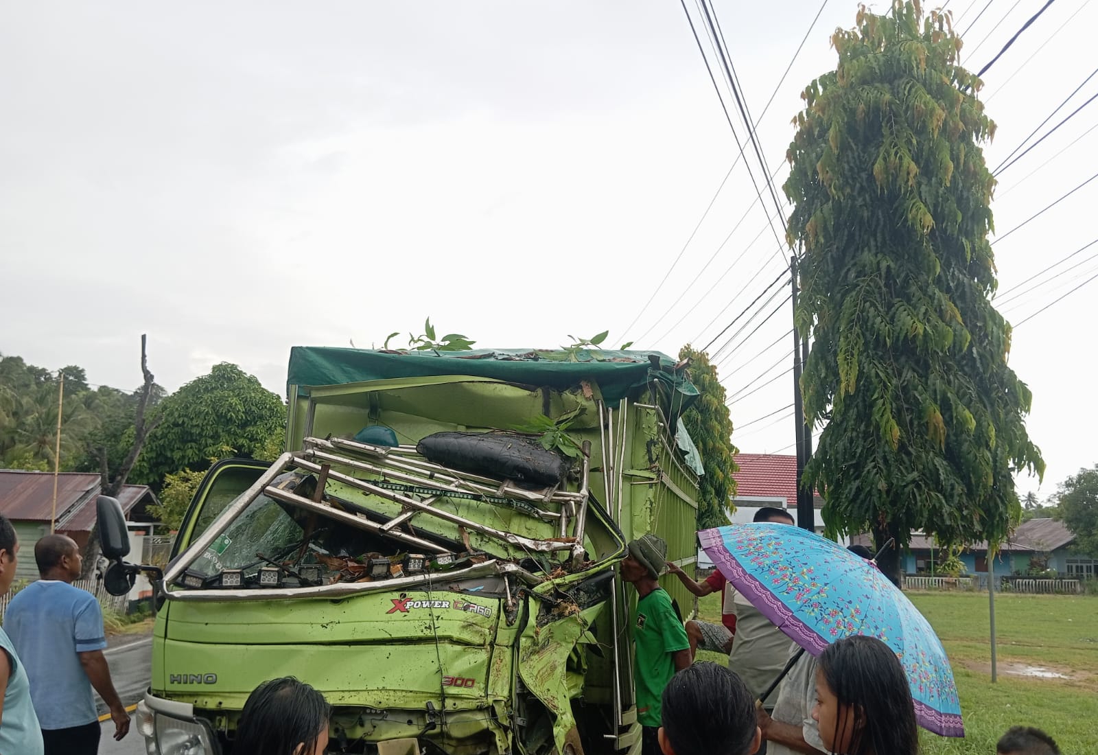 Truk yang diketahui melaju dari arah Gorontalo menuju Manado itu menabrak pohon yang ada di halaman rumah warga sekitar di pinggir jalan tanpa melibatkan kendaraan lain. Beruntung, tidak ada korban jiwa dalam insiden tersebut, namun kendaraan mengalami kerusakan dan sempat mengganggu arus lalu lintas di sekitar lokasi kejadian.