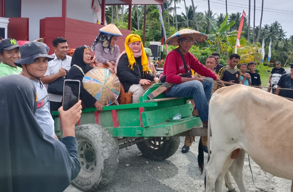 Beliau menggunakan gerobak sapi dan didampingi Lurah Bailo Nurjana K. Yahya, SH, pemangku adat, dan warga.